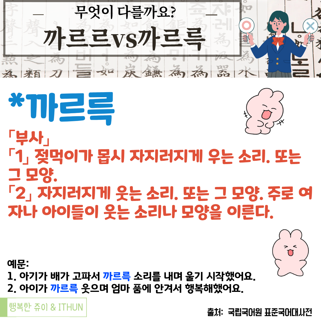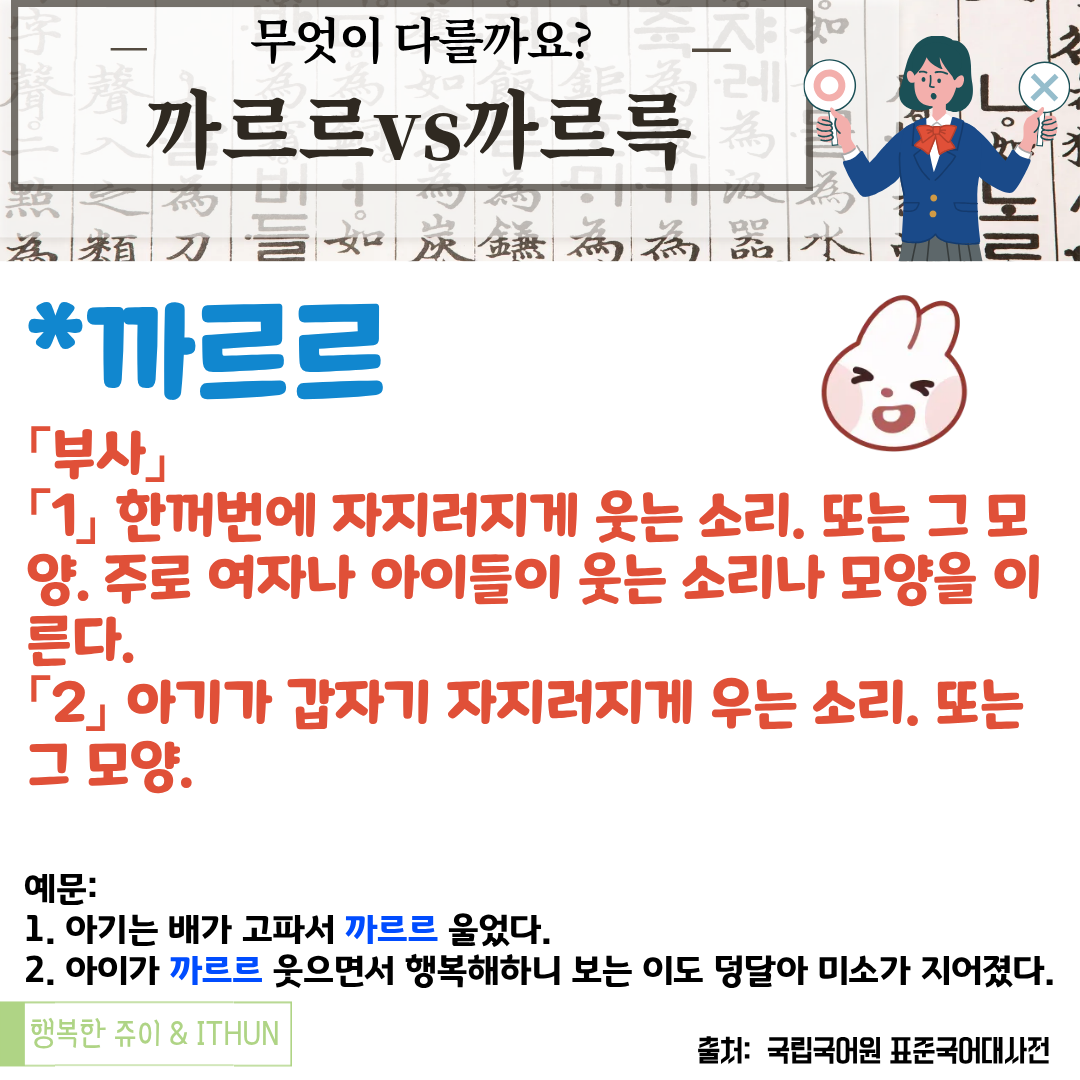 오늘은 '까르르'와 '까르륵'에 대해서 정리해 보았다.