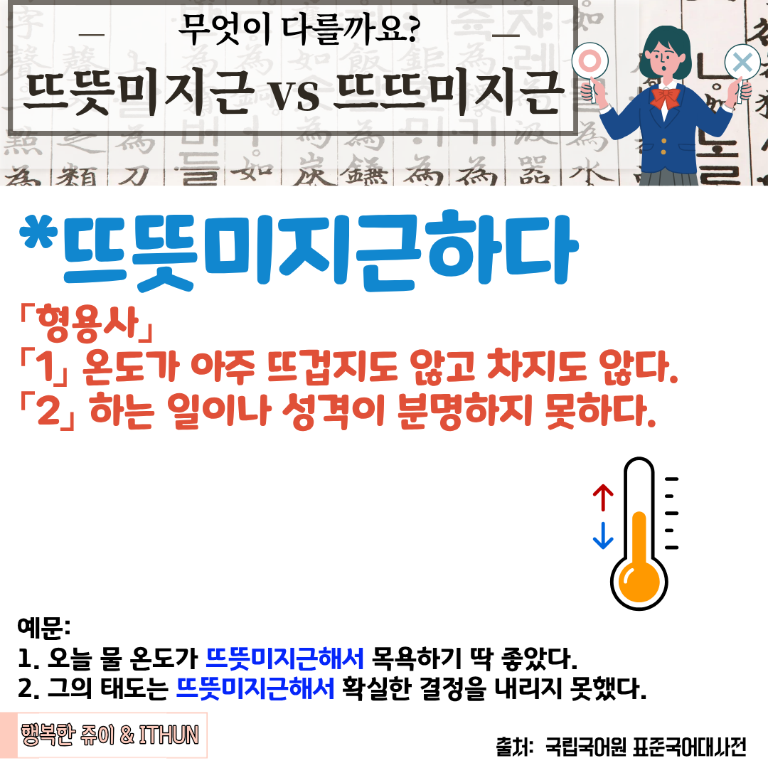 오늘은 '뜨뜻미지근하다'에 대해 정리해 보았다.