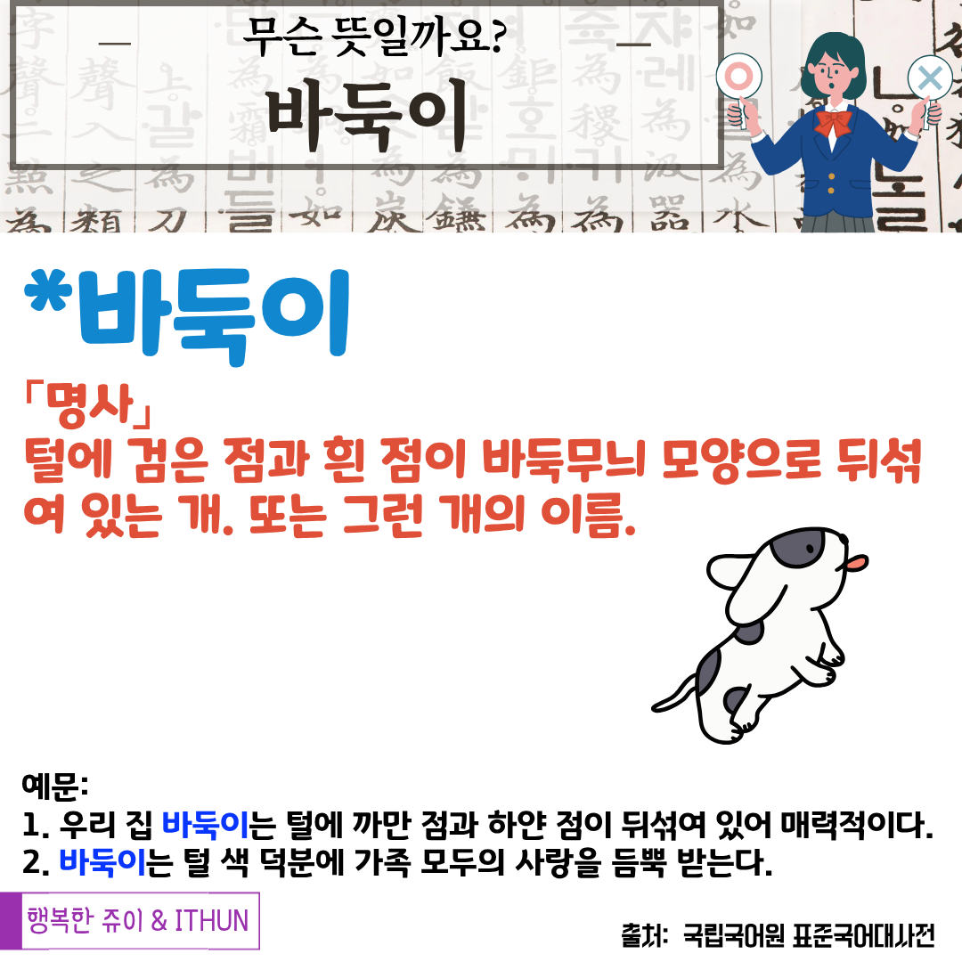 '바둑강아지'와 '바둑이' 정말 비슷한 뜻을 가진 단어라