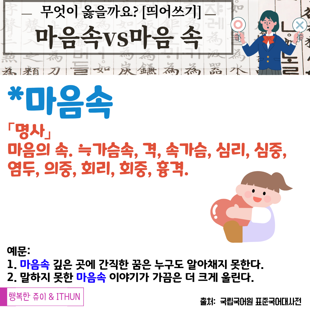 세상에나 '마음속'이 한 단어였다니