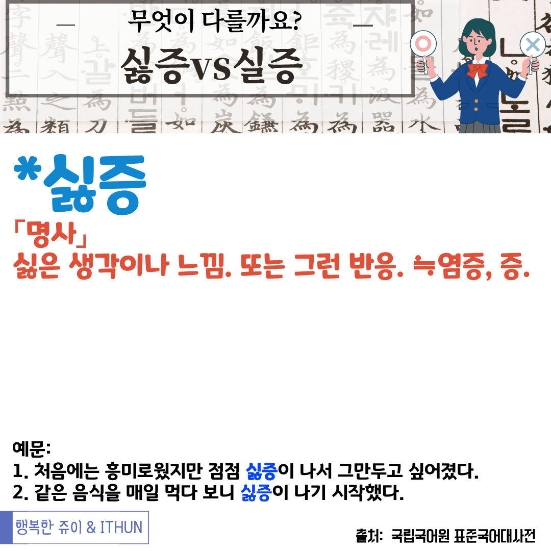 오늘은 '싫증'과 '실증'에 대해 정리해 보겠습니다.