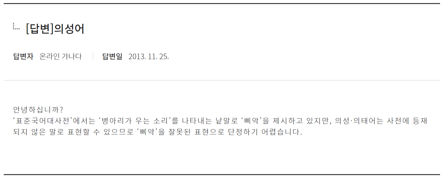 3. '삐약삐약' 을 잘못된 말로 생각할 수는 없다. 는 사실을 알았다.