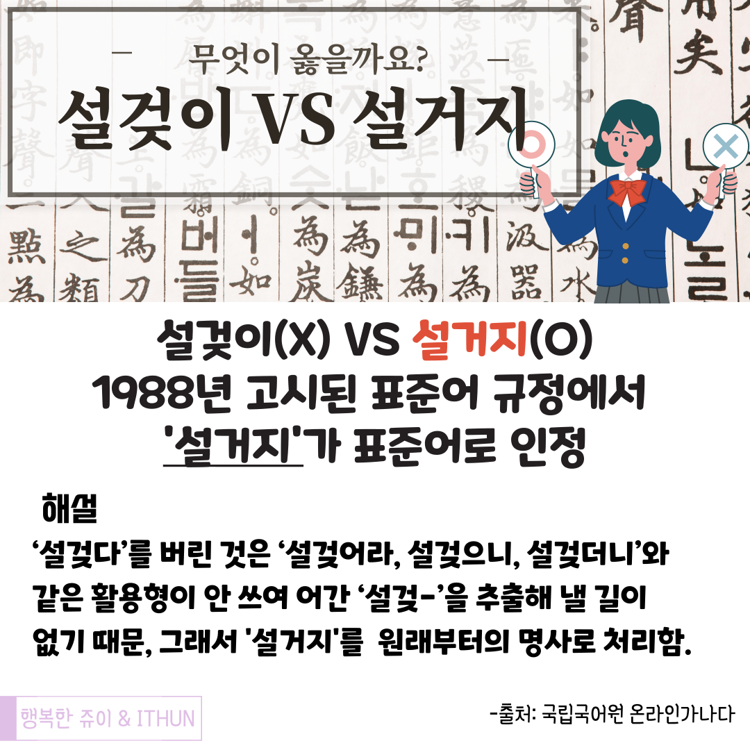 설겆이와 설거지 중 무엇이 표준어인지 위의 그림으로 정리해보았다.