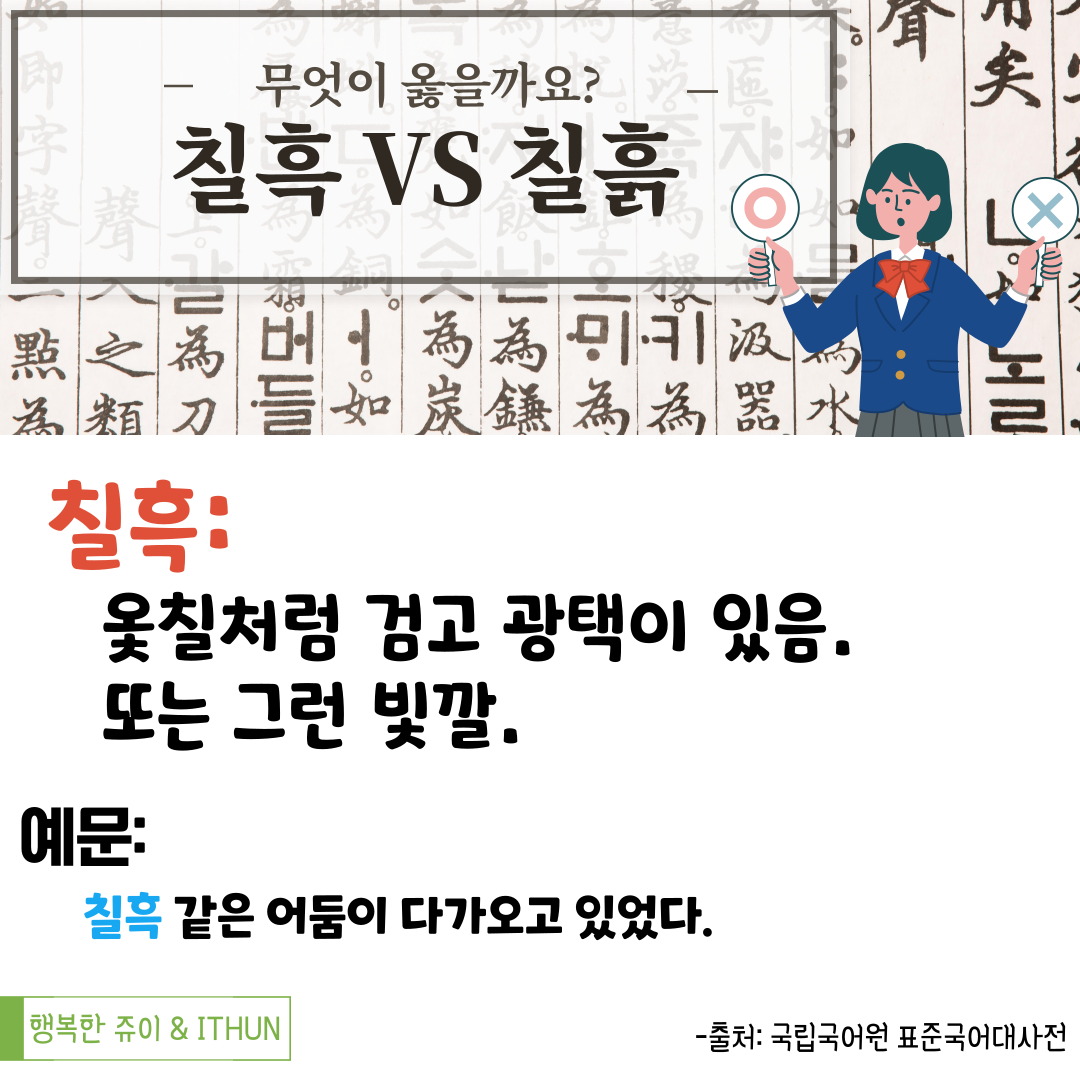 이유는 '칠흑' 이 맞는 건가? '칠흙' 아닌가?