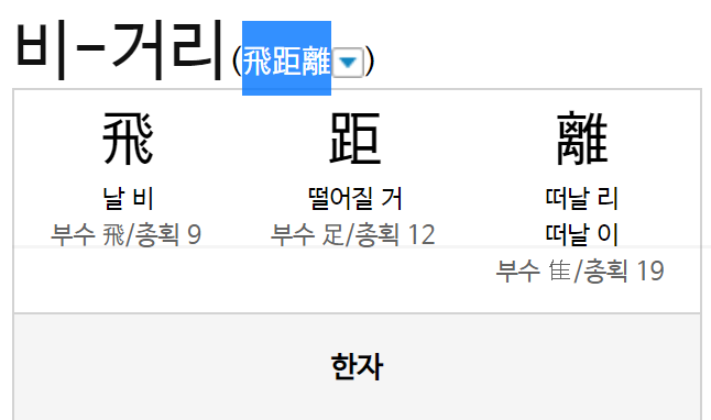 한자 뜻을 보니 '날아서 떨어진 거리' 를 의미하는 것이 바로 '비거리' 이다.