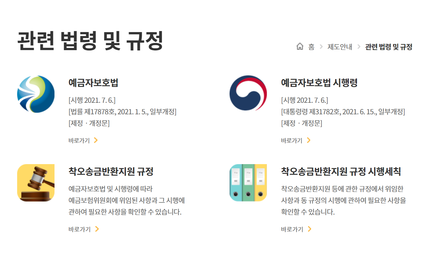 출처: KDIC 예금보험공사 착오송금반환지원서비스 > 제도안내 > 관련 법령 및 규정