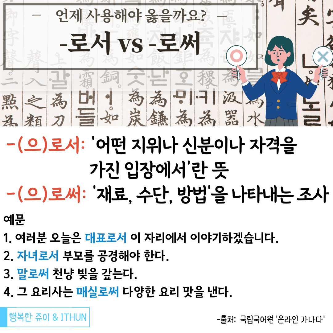 여기서도 -(으)로서는 '자격', -(으)로써는 '수단' 을 나타낸다고 나와있다.