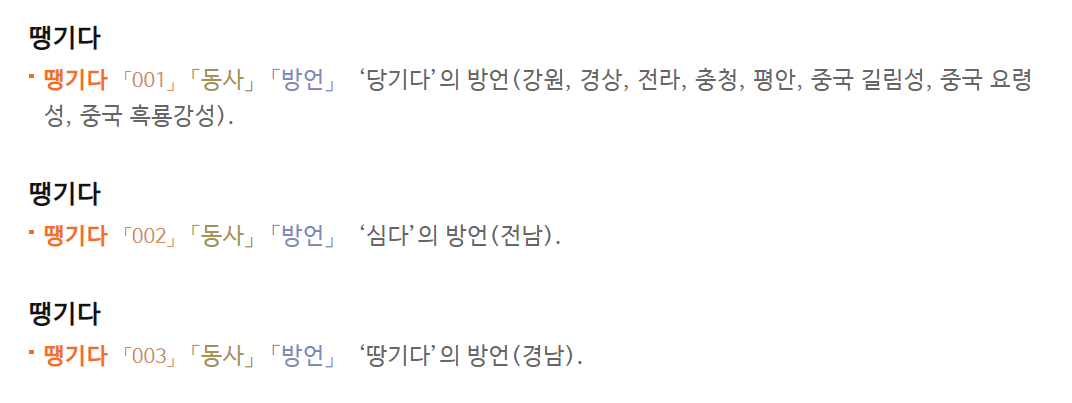 국립국어원 표준국어대사전에서 '땡기다' 를 검색하니