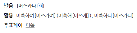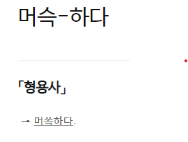 '머슥하다→머쓱하다' 로 되어 있는 검색결과를 얻게 된다.