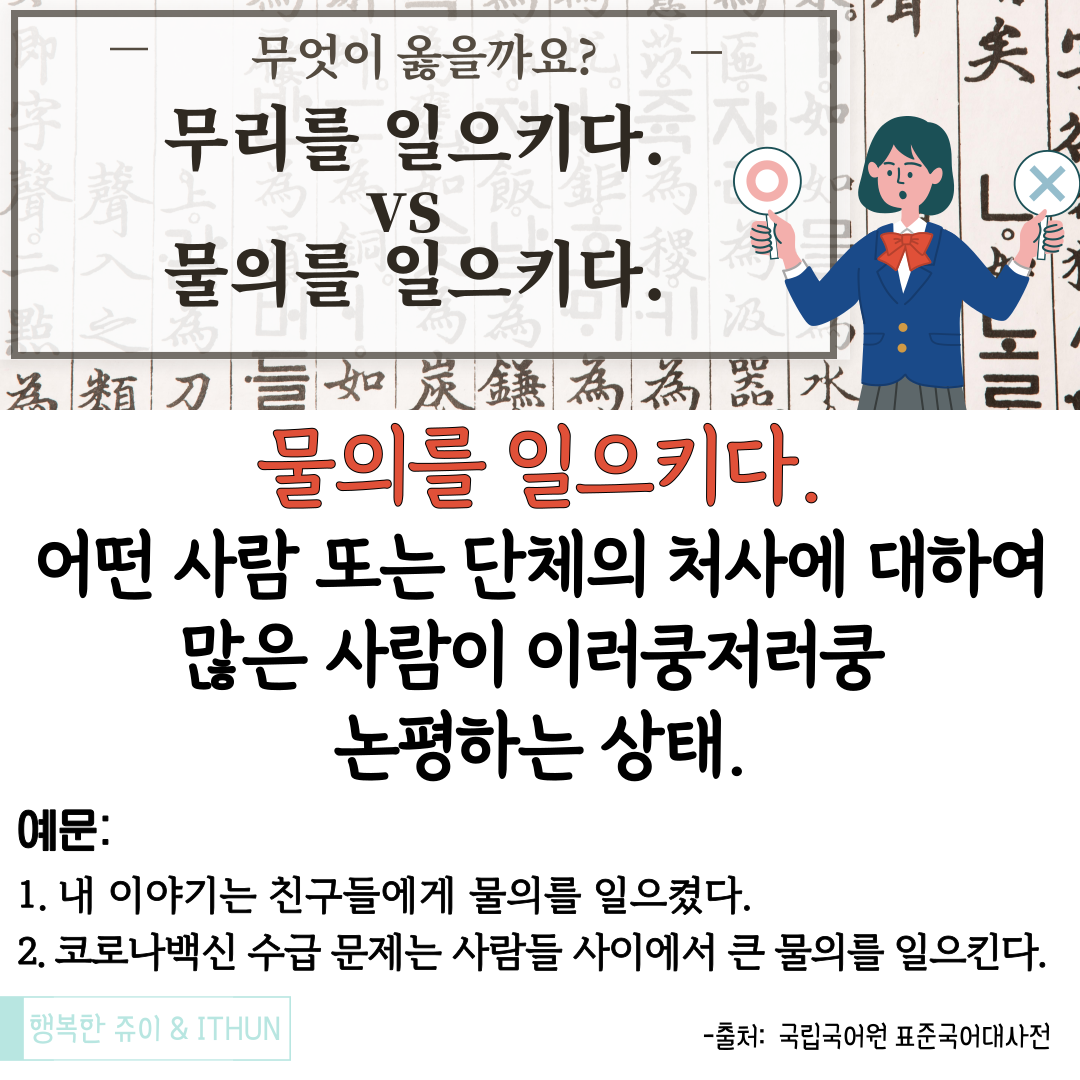 물의를 일으켰다./물의를 일으킨다. 라는 말은