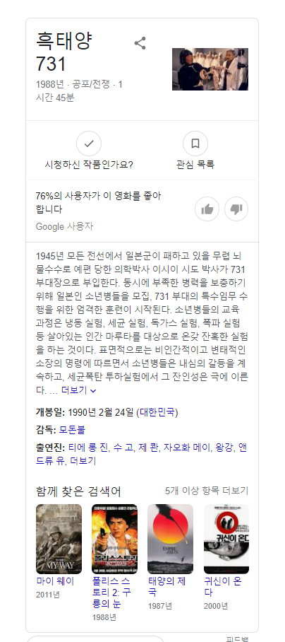 나는 직접 볼 자신은 없지만 이 영화가 '731부대' 에서 행해진 '생체실험' 을 다룬 영화라고 한다.