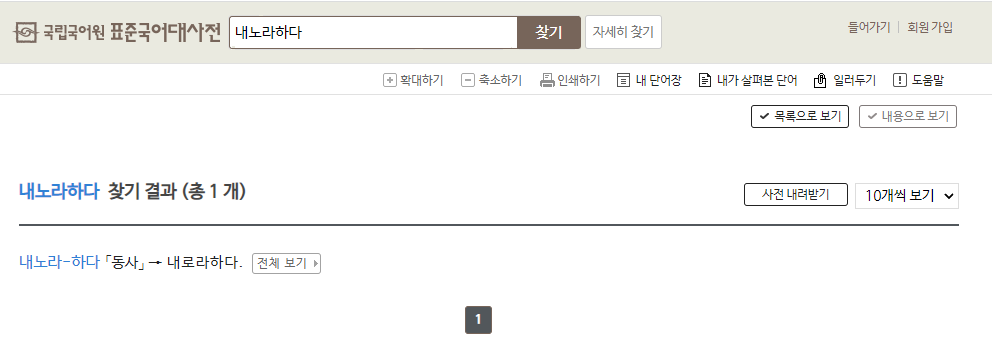 국립국어원 표준국어대사전에서 '내노라하다' 를 찾아보았다.