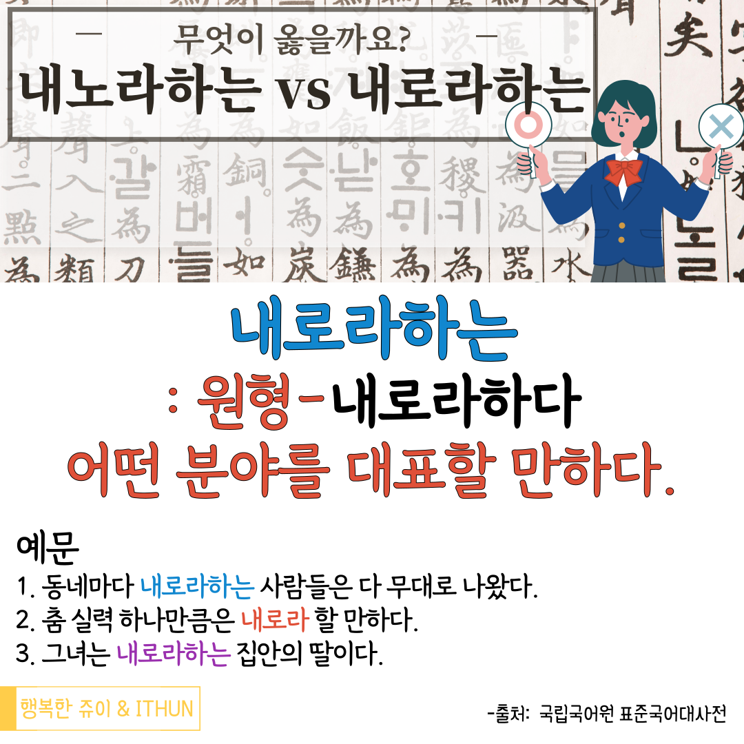 '내로라하다' 단어의 발음조차도 우리가 잘못 사용하고 있었던 건 아닐까? 싶다.