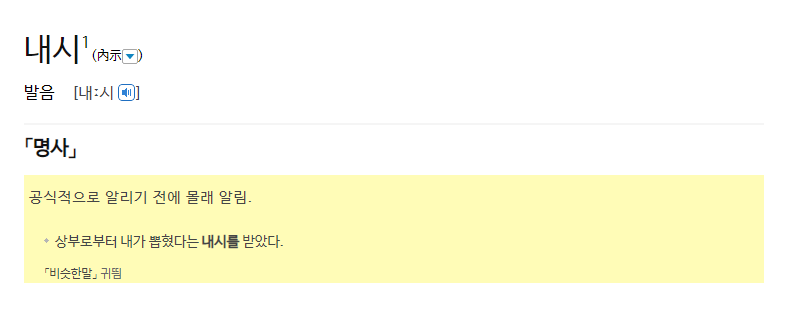 '내시' 는 한자어로 공식적으로 알리기 전에 몰래 알린다는 뜻을 가졌다.