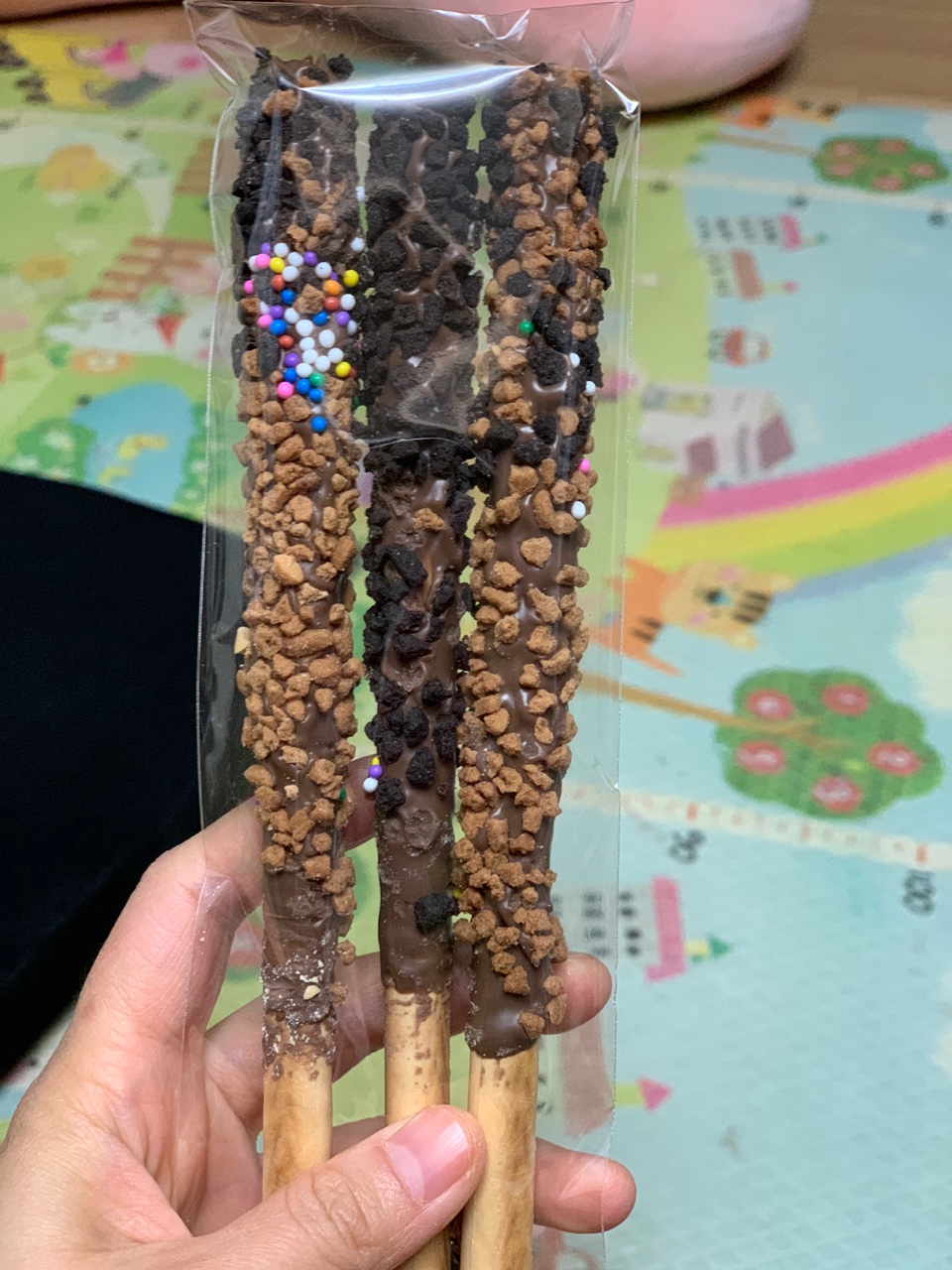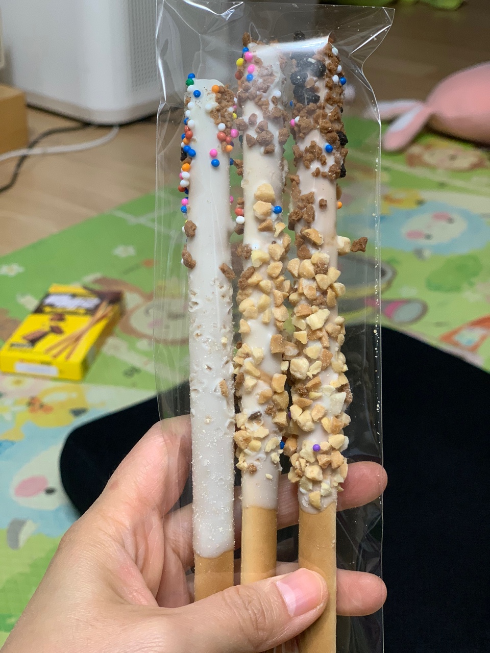 아몬드도 고루고루 묻혀 있어서 고소하고 초코도 달콤하고 막대과자도 바삭바삭하니 맛있었다.