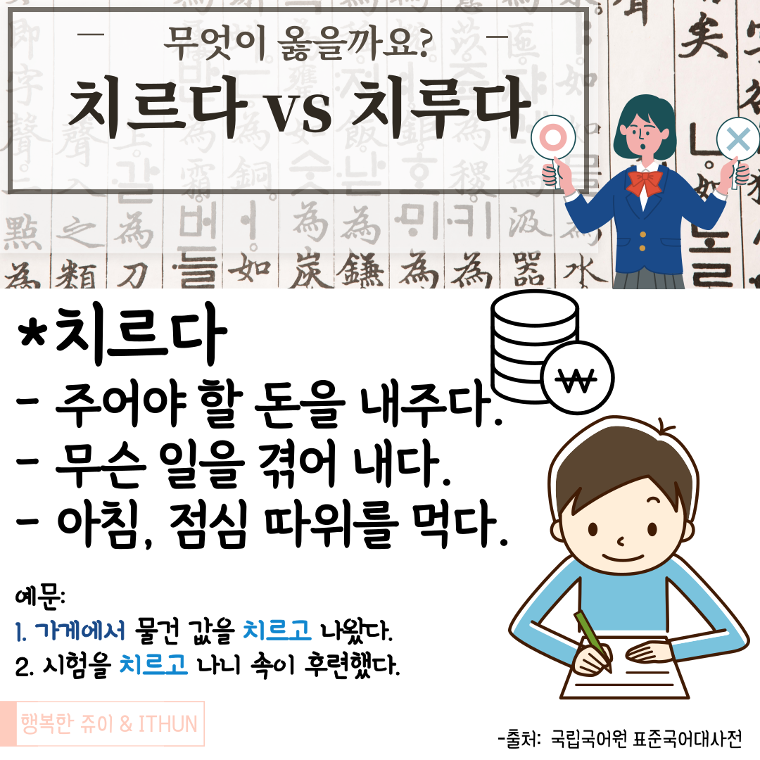 수능 시험을 앞두고 '시험을 치르다. VS 시험을 치루다.' 에 대해 알아보았다.
