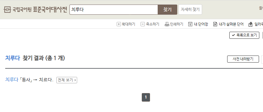 '치루다' 의 단어를 검색했을 때 이런 결과가 나왔다.