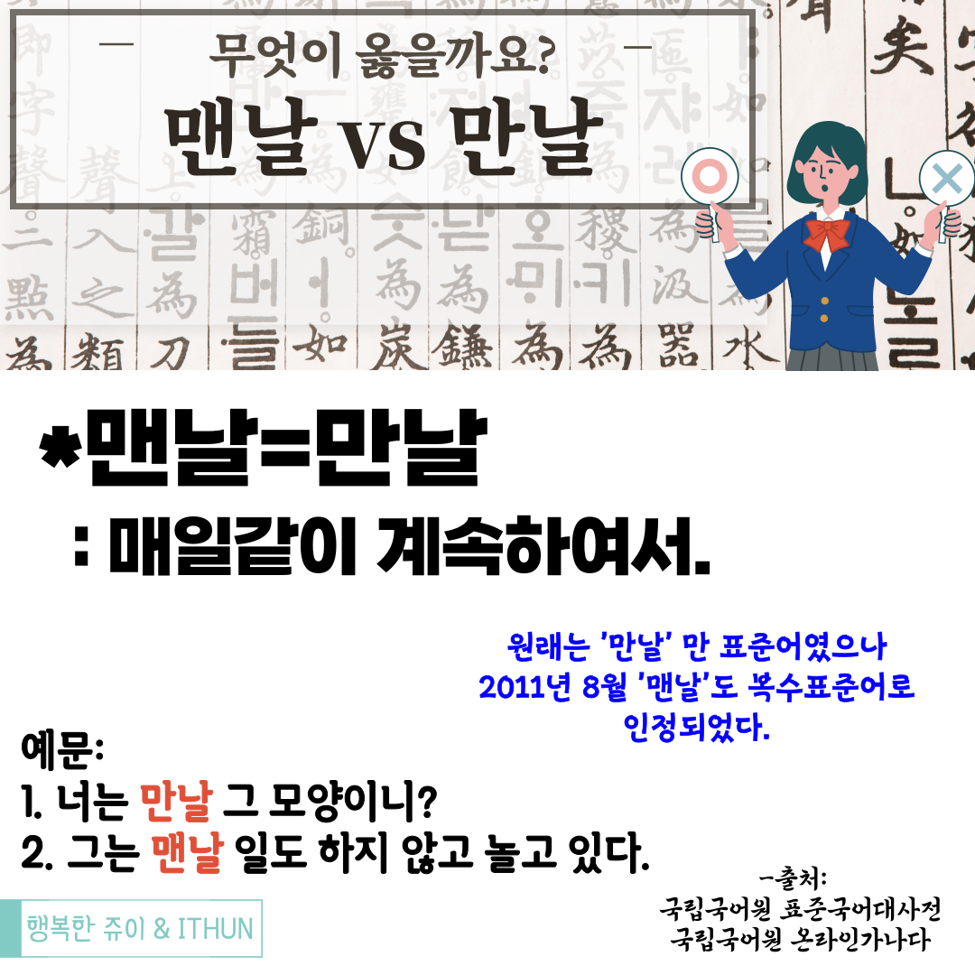 이제는 '만날' 과 '맨날' 모두다 표준어라는 것을 알게 되었으니