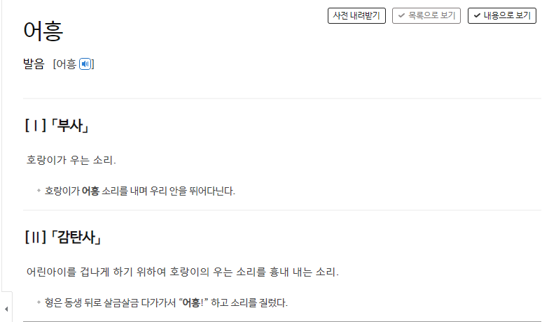 '어흥' 은 내가 생각했던 것처럼 '호랑이가 우는 소리' 가 맞았다.