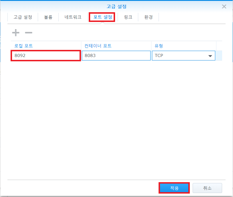 2-9. 컨테이너 포트는 건들지 말고 그대로 두고 로컬 포트는 본인이 하고 싶은 포트를 입력하면 된다.