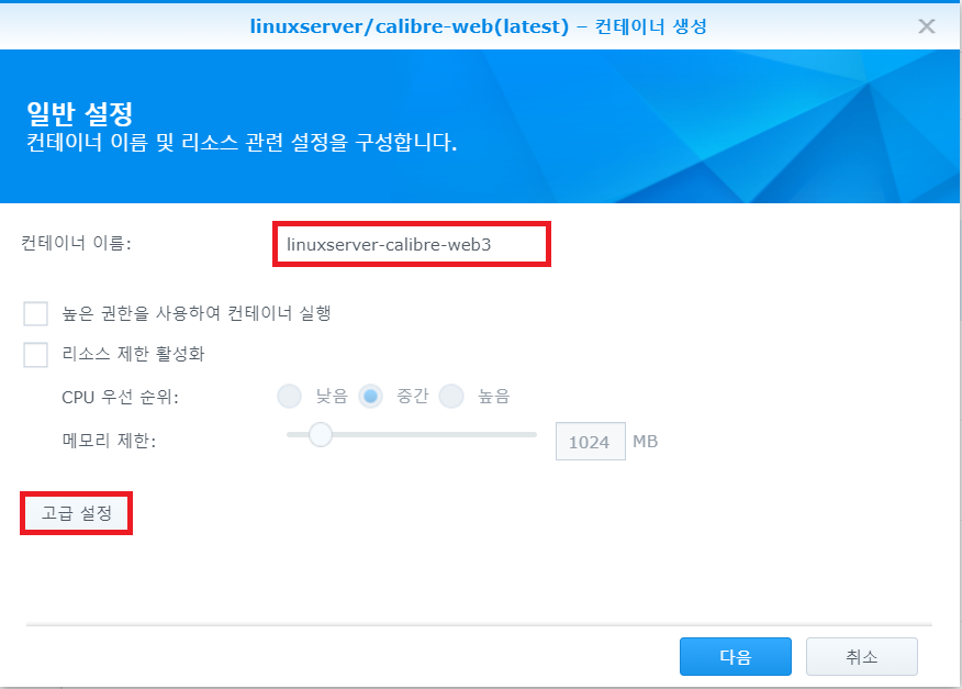 2-7. 사실 폴더 이름은 아무렇게 해도 괜찮다. 제일 중요한 부분은 마운트 경로 부분이 제일 중요한다. 꼭 /config , /books를 입력해야 한다. 제대로 입력하지 않으면 docker를 설치해도 실행이 되지 않을 것이다.