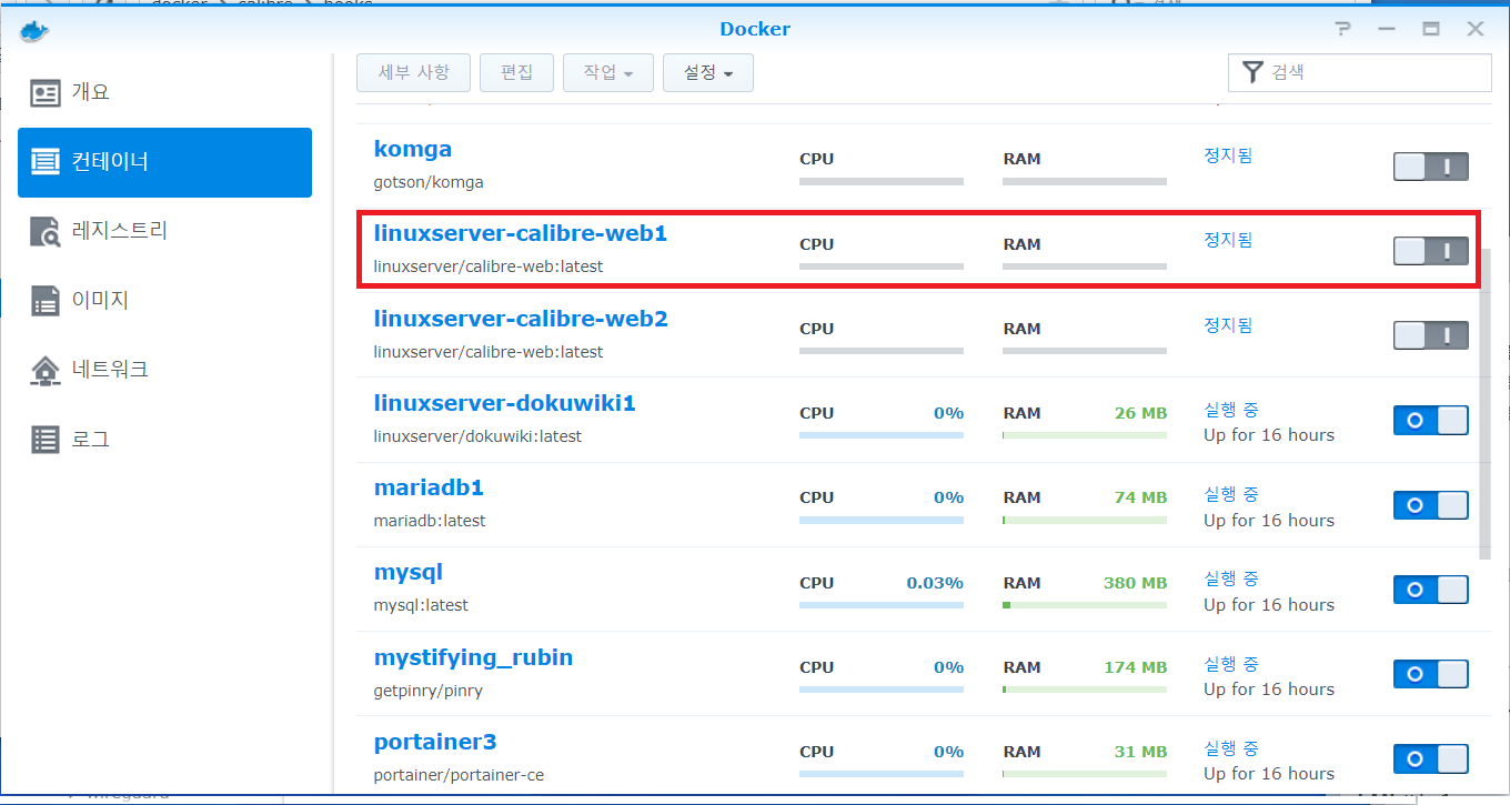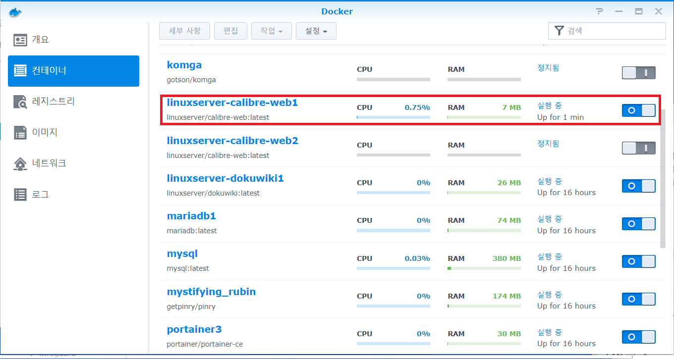 시놀로지 calibre-web docker 설치-1-