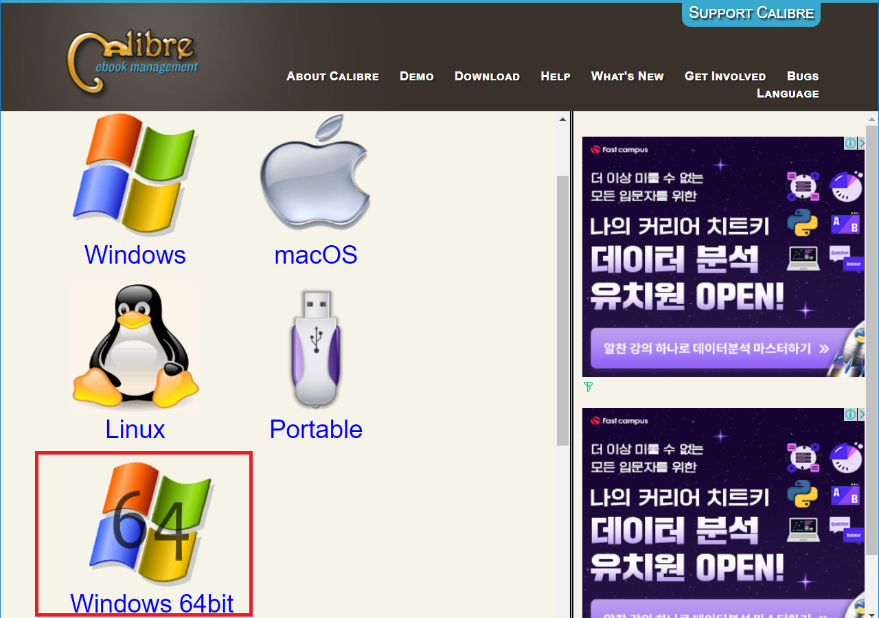 1. 사이트에서 calibre 프로그램 다운로드