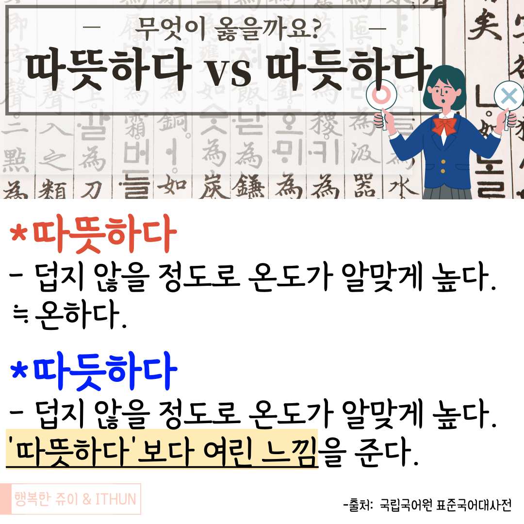 그럼 오늘도 이렇게 '따뜻하다' 와 '따듯하다' 의 정리를 해보았다.