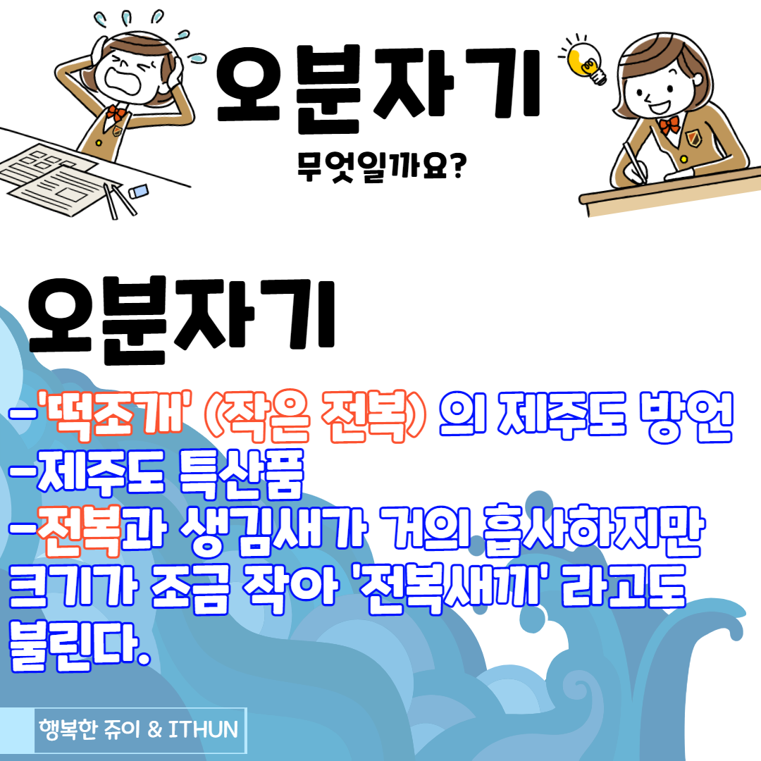 '오분자기' 는 작은 전복을 일컫는 제주도 방언이다.