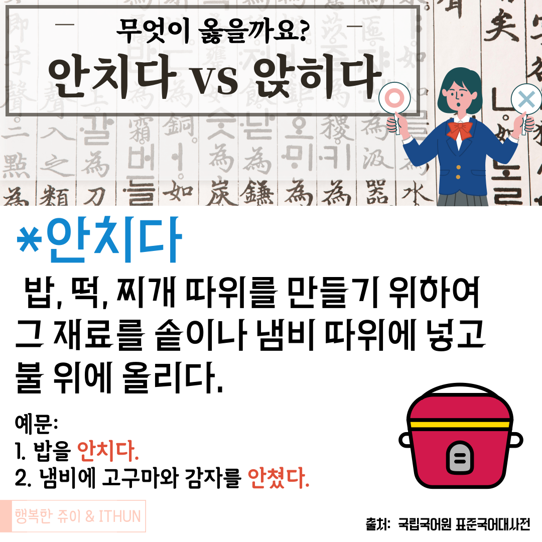 '밥을 안치다' 와 '밥을 않히다' 어떤 표현이 옳을까요?