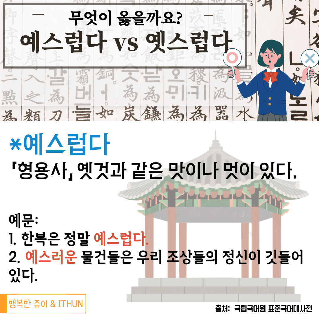 '옛스럽다' 가 아니라 '예스럽다' 잊지 말고 꼭 기억하자!