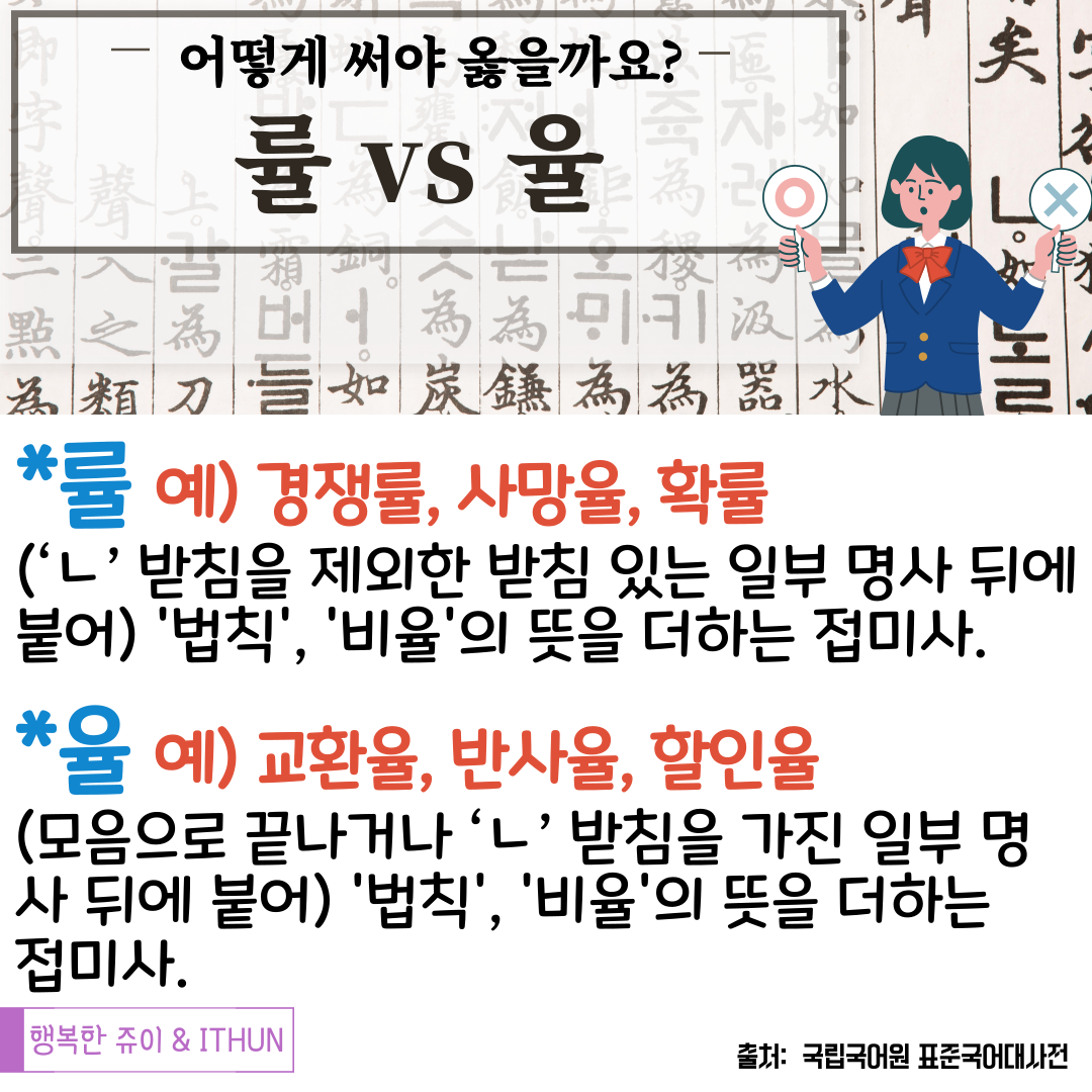 헷갈리기 시작하면 어려운 접미사 '률' 과 '율' 구별하기!