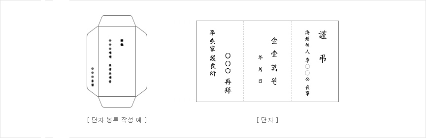 3. 부조하는 물독이 돈일 경우에는 단자에 '금 ○○원'이라 쓴다.