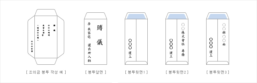 1. 조의금 봉투에는 '부의(賻儀)'라 쓰는 것이 가장 일반적이다.