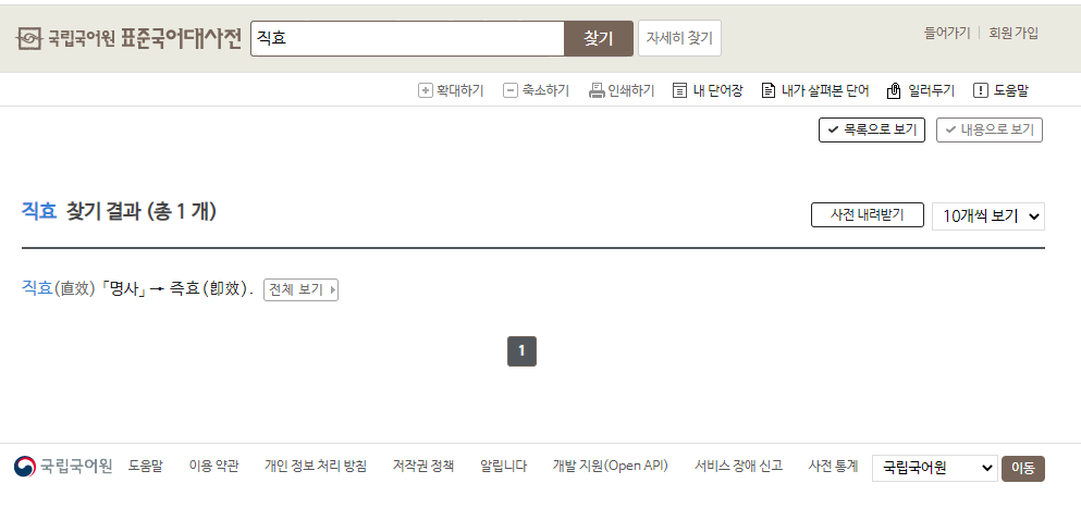 하지만 '직효' 는 없는 단어.