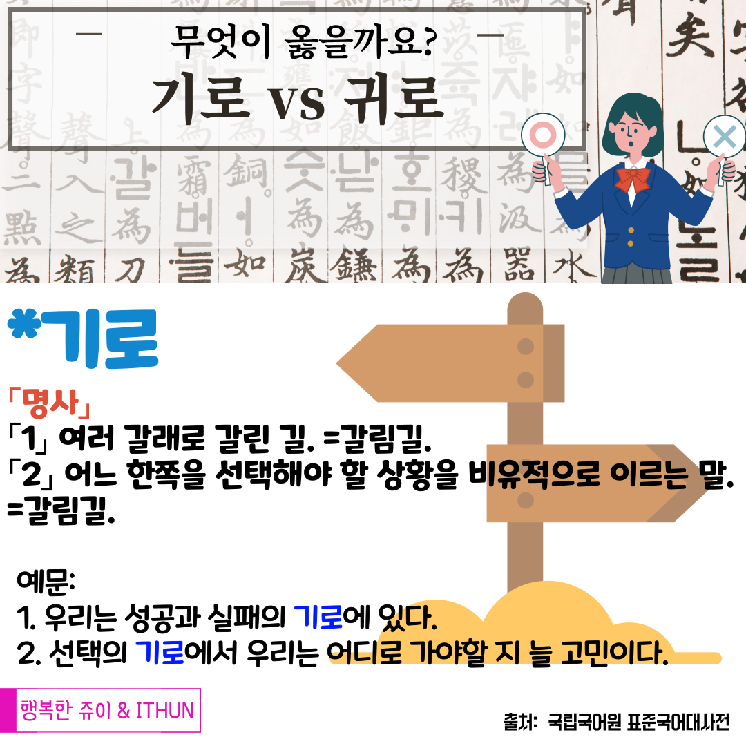 '기로' 라고 써야 '갈림길' 의 의미를 나타내는 단어라는 사실!