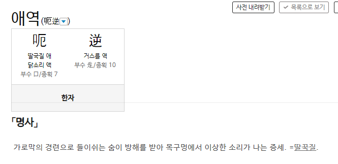 딸꾹질과 같은 말로 애역, 흘역이 있었다. 사실 처음 들은 단어라서 세상에 딸꾹질과 같은 의미의 낱말이 있었다는 것부터가 너무나도 놀라웠다.