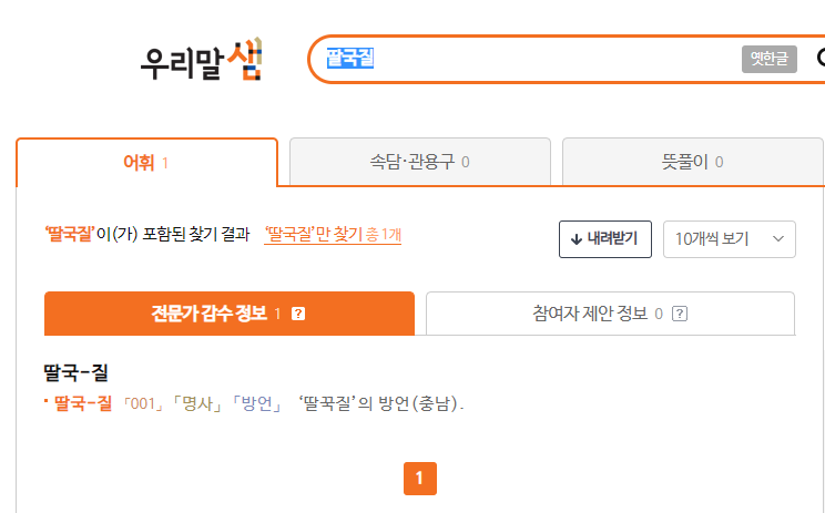 '딸꾹질' 의 충청남도 방언이라고 적혀 있었다.