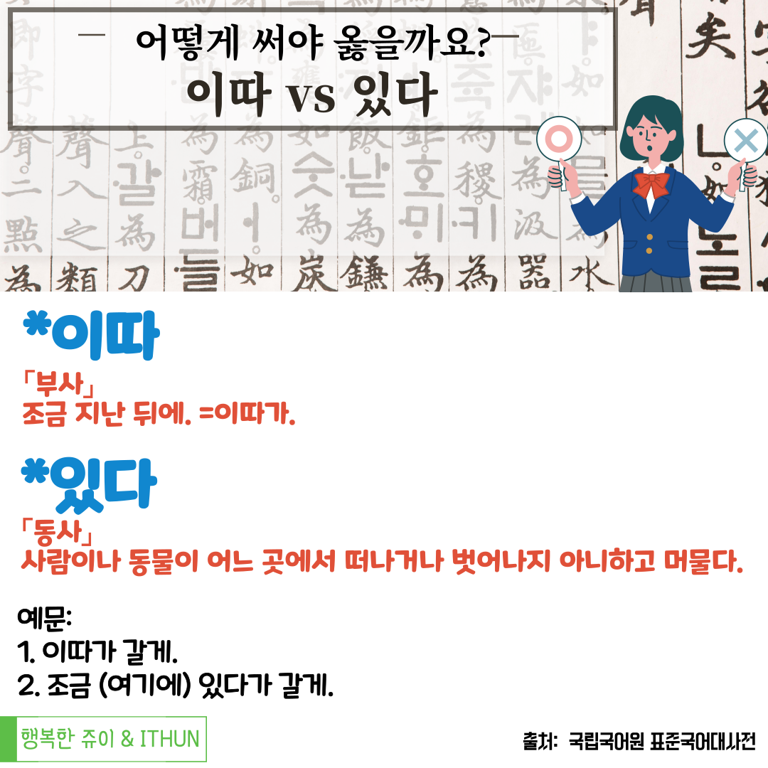 문제 1. 이따가 보자. (O) 2. 있다가 보자. (X)