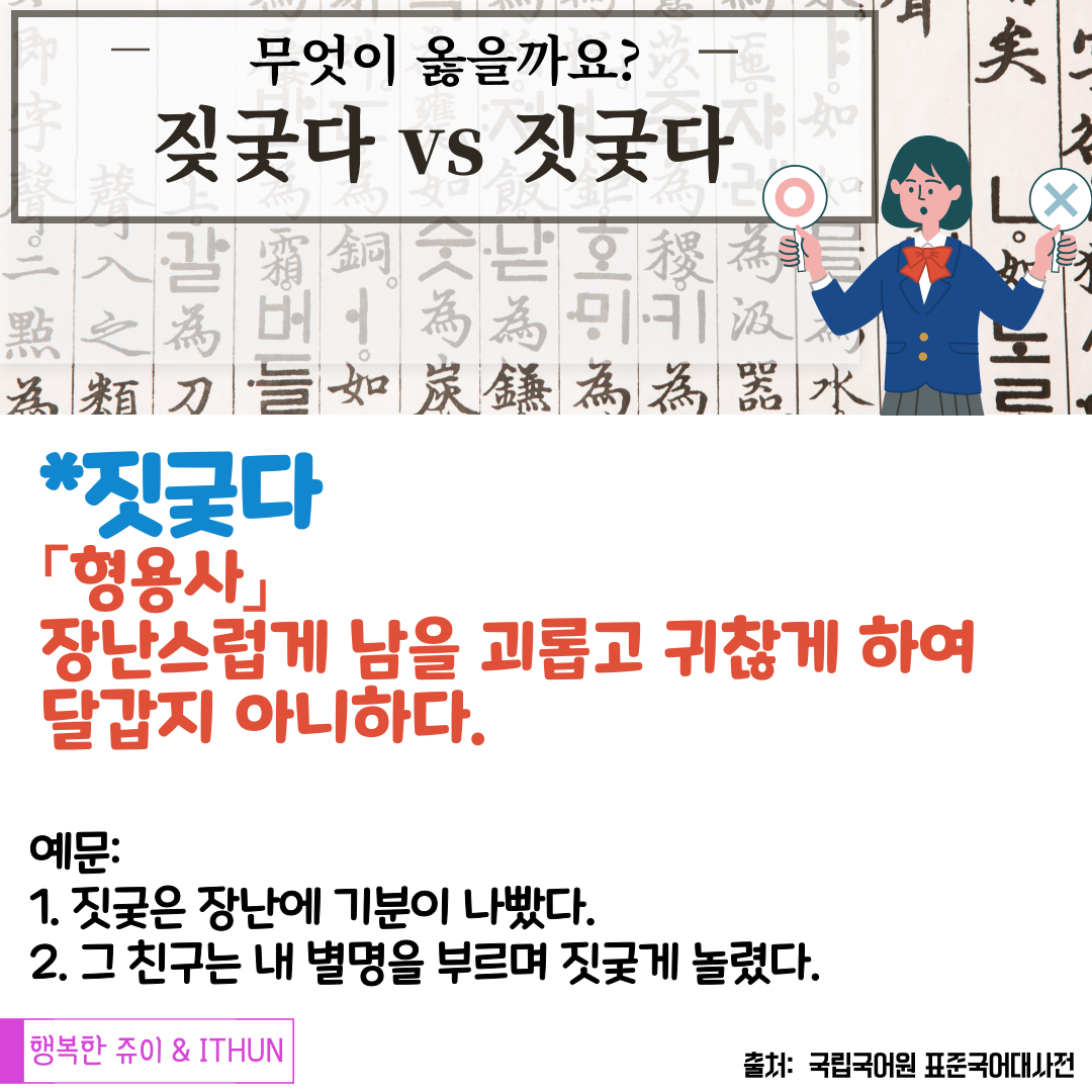 1번과 2번, 짖궂다? 짓궂다? 중 무엇이 옳은 것인지 함께 알아보자!