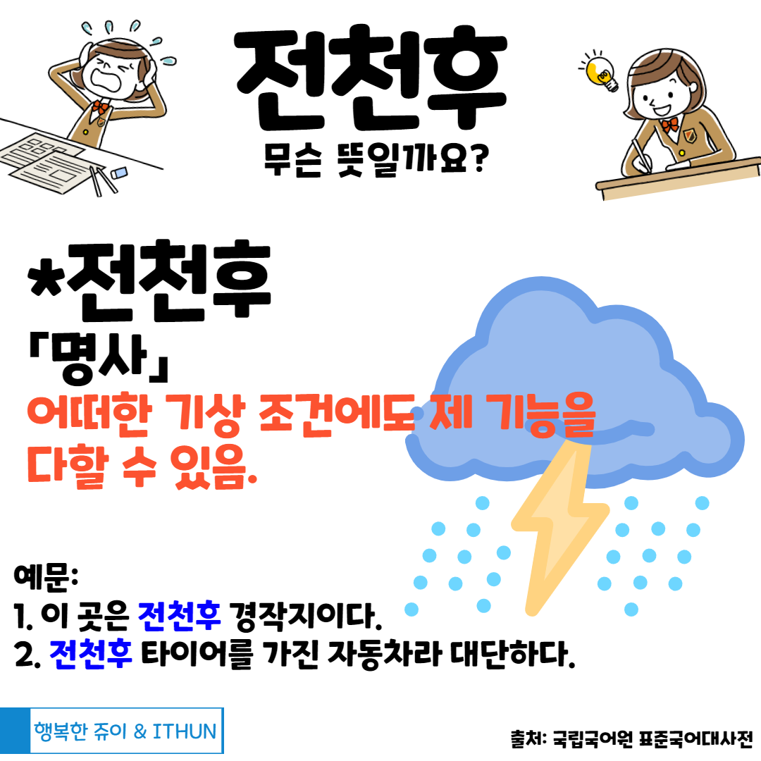 국어사전 '전천후'의 의미입니다. 기상 조건과 연관된 단어인데요,