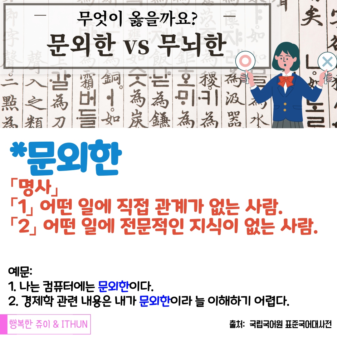 오늘은 '문외한' 과 '무뇌한' 에 대해 알아보았다.