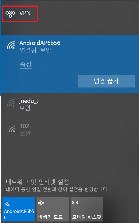 우리가 3-2에서 설정한 이름이 바로 VPN으로 이름으로 뜬다.