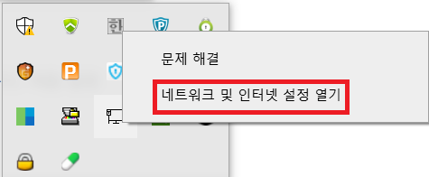 마우스 우클릭을 한 후 네트워크 및 인터넷 설정 열기를 클릭한다.