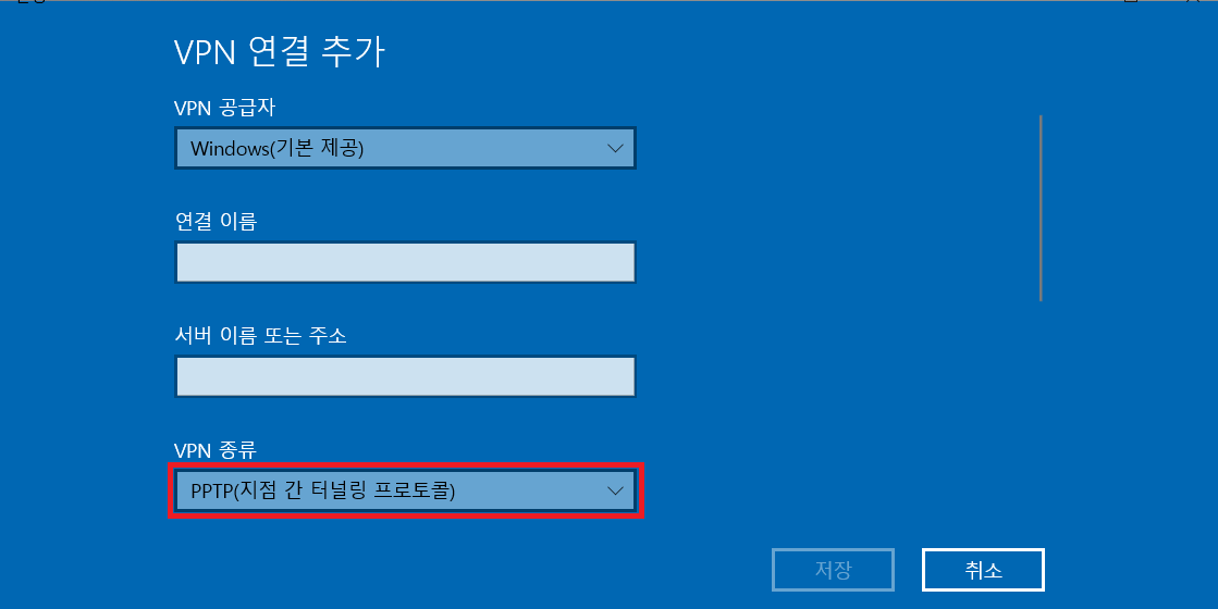 3-1. VPN공급자: windows(기본 제공)으로 선택