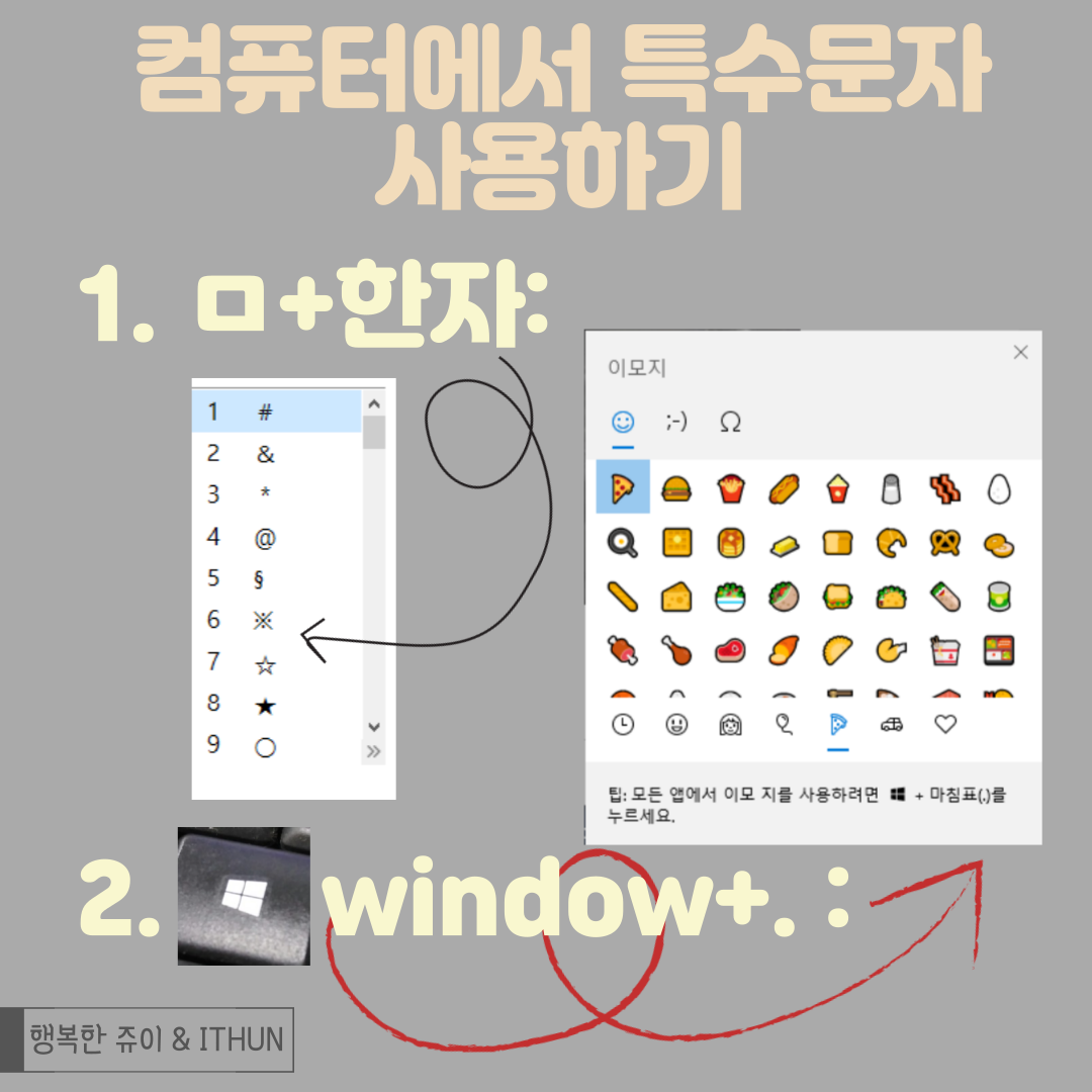 위의 그림에서처럼 컴퓨터에서 특수문자를 사용하는 방법은 2가지로 정리할 수 있다.