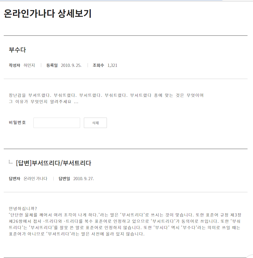출처: 온라인가나다 상세보기(부수다) | 국립국어원 (korean.go.kr)