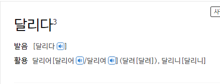 '달리다' 재물이나 기술, 힘 따위가 모자라다. 발음 [달리다] 활용: 달리어, 달려, 달리니