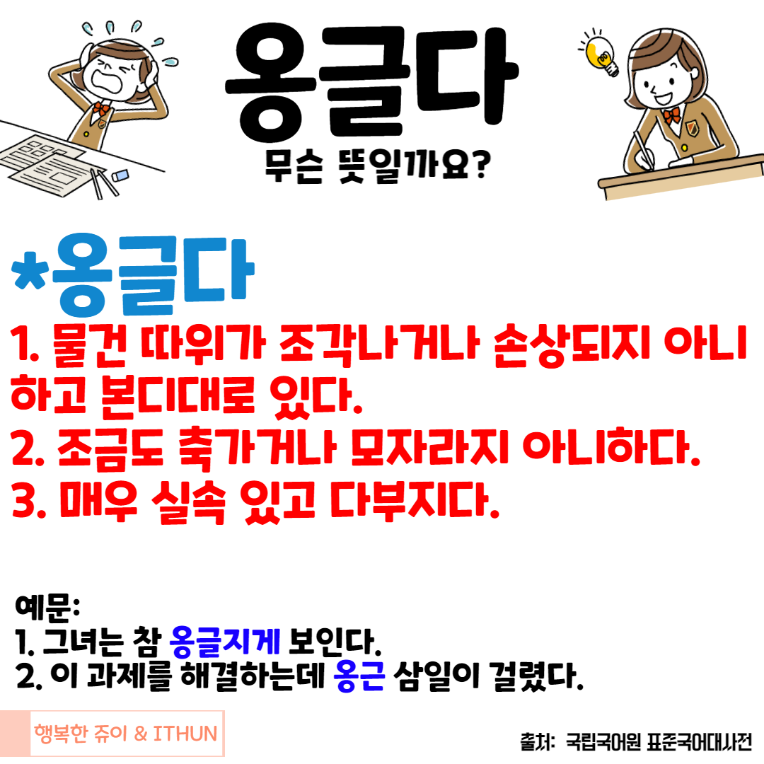 활용 옹글어[옹그러], 옹그니[옹그니], 옹그오[옹그오]