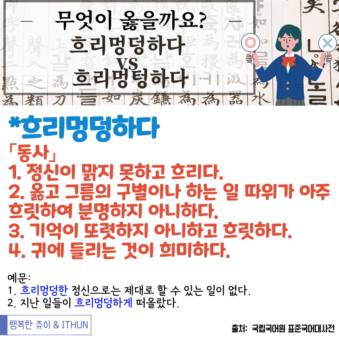 사실 '흐리멍텅하다' 가 옳은 표현일거라고 생각했는데,